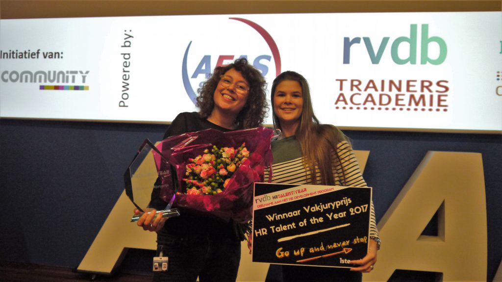 Onder groot applaus werd Iris Zonneveldt (CEO Treams), tijdens het HR Talent Event in Leusden op vrijdag 19 januari 2018 uitgeroepen tot HR Talent of the Year! In een zenuwslopende finale ging zij de strijd aan met 7 andere HR-talenten. Er werd over verschillende actuele thema’s gebattled waaronder employee engagement, vitaliteit en duurzame inzetbaarheid. Na de pitches en battles ging de jury in beraad en kwam Iris als winnaar van de 1e prijs uit de bus.​