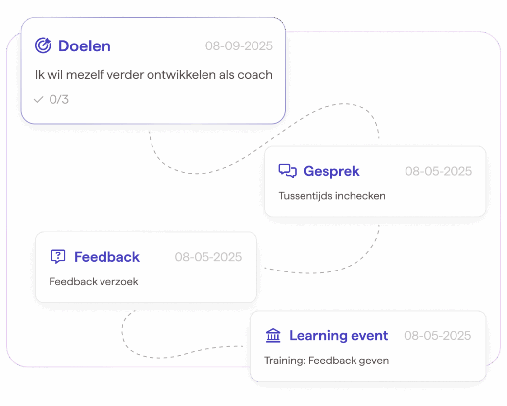 Medewerkers nemen regie over hun eigen ontwikkeling. Met duidelijke doelen, feedback en persoonlijke inzichten hebben ze altijd een concreet startpunt om te groeien.